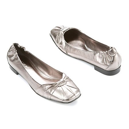 - "Just" genuine leather flat with elasticized heel from BCBGirls. Ruched leather on vamp.