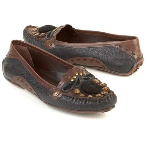 BCBG *Sacha* leather loafers. Decorative cutout and Decorative ornament. scalloped edge and whipstitch detail. Pebble-grain finish. Antiqued gold-tone hardware. Monogram detail on hardware. Gold-tone studs. Pointy-toe design. Suede trim. Cushioned insole. Leather lining. Leather sole with rubber insert.