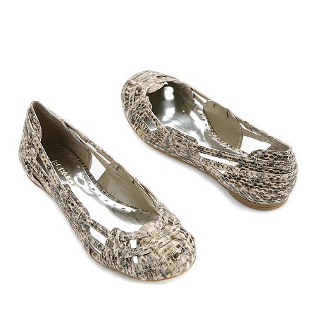 - "Gentle" genuine woven leather flat from BCBGirls. Thin slightly elasticized strap on inner side.