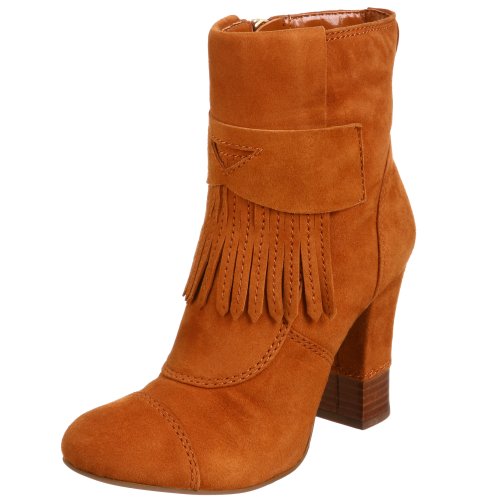 Fringe is in, in a big way! The Inkies Ankle Bootie from BCBGirls lets you join in on the fun. Soft suede uppers feature stylish overlays and a flat fringe design on the upper vamp. A chunky, covered heel and convenient side-zip add to the convenience of this ultra stylish shoe. A non-slip man-made outsole imprinted with a BCBGirls logo completes this fringed heel.