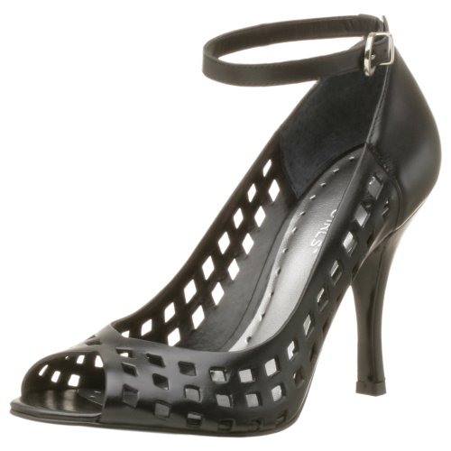 Bring on the night when you slip on this pair of ornately artful open-toe pumps. The leather upper offers a unique open latticework design, and it's completed by an adjustable ankle strap.