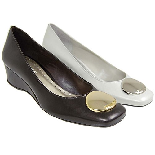 - Womens shoes feature slip-on styling, top signature polished buckle