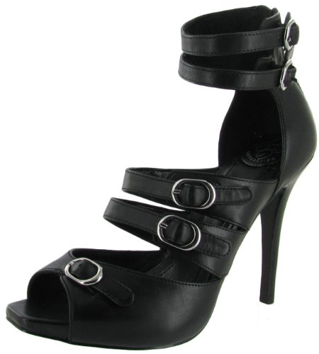 Strappy and vampy are a must with these hot heels from BCBGirls. Melindas features soft black suede throughout with straps and silver buckles across the front. Double adjustable ankle straps, a back zipper, a 4 inch stiletto heel and 1/4 inch hidden platform completes this dressy sandal. Style Name: Melindas. Black.